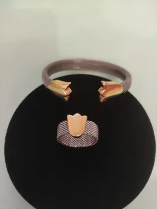 Brazalete de oro 18 kt y acero Tous original Medida de diametro 5,5 cm Anillo de oro 18 kt y acero Tous original Talla 14 Modelo tulipán Descatalogado