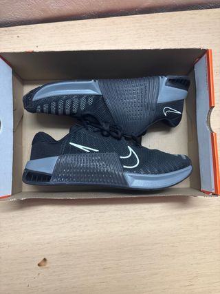 Zapatillas deportivas Nike Metcon 9 en color negro y gris. Diseñadas para el entrenamiento. - Parte superior de malla transpirable. - Suela de goma para mayor tracción. - Cierre de cordones.