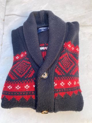 Jersey de punto con diseño jacquard. - Cuello tipo chal. - Cierre de botones. - Manga larga.