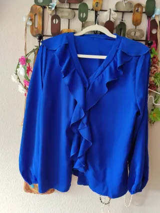 Blusa azul con volantes