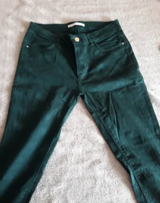 🏷️ Talla 38 de Sfera. 🌿 Verde oscuro 📏 Medidas en fotos(107 largo x 37,5 cintura) 👖 La tela es mas bien gordita no fina de verano. 🎁No se llego a usar.