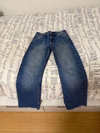 Vendo estos pantalones vaqueros de corte recto y en excelente estado Acabado de bajo deshilachado. Muy cómodo Muy poco uso Precio negociable 💰