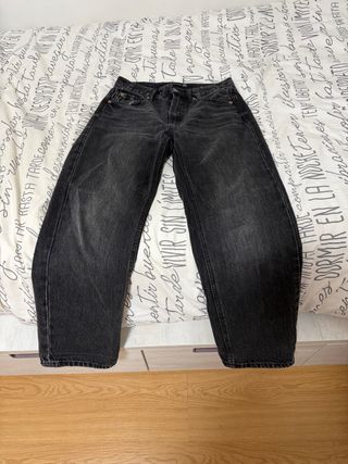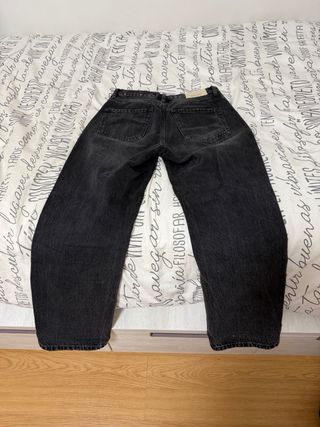 Vendo estos pantalones vaqueros en color negro. Corte holgado de cadera a bajo. Diseño desgastado. En muy buen estado, apenas usados. La tela es denim, resistente pero cómoda. Precio negociable 💰
