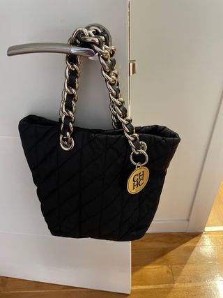 Bolso Carolina Herrera con un diseño acolchado y detalles dorados. - Asa de cadena gruesa con eslabones dorados y detalles en piel negra. - Charm metálico dorado con las iniciales CH en relieve. No negociable , no se admite devolucion , solo envios.