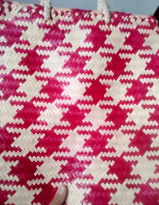 👜 Bolso de rafia o mimbre 💖 Fucsia y beige. 📏 Medidas en fotos(33,5 largo x 35 ancho) 🏷️ Asa de cuerda
