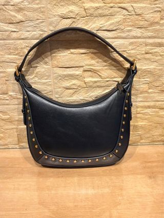 Bolso Negro Mango con Tachuelas Doradas. Nuevo.