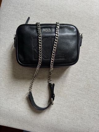 Bolso de la marca Karl Lagerfeld en cuero natural. Se encuentra en perfecto estado, como nuevo. - Diseño elegante y moderno. - Cadena metálica plateada. - Logo de la marca grabado.