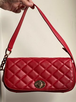 Bolso de piel rojo con detalles dorados