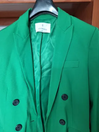 Americana de Stradivarius en color verde. - Diseño de doble botonadura. - Bolsillos frontales. - Cuello solapa.