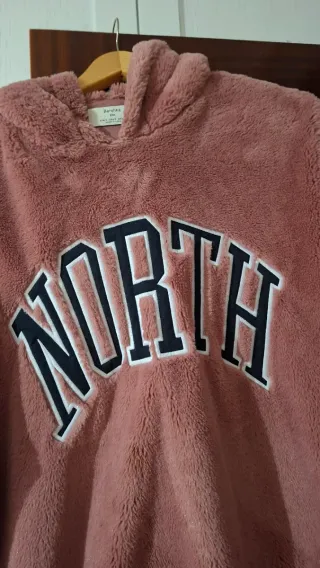 Sudadera de pelo suave con diseño NORTH bordado. Con capucha y forrada interior - Material: Pelo sintético. - Color: Rosa. - Diseño: NORTH en contraste.