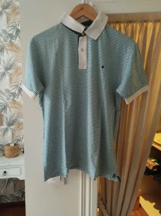 Polo de manga corta con un diseño de rayas. - Cuello blanco. - Cierre de botones. - Pequeño logo en el lateral.