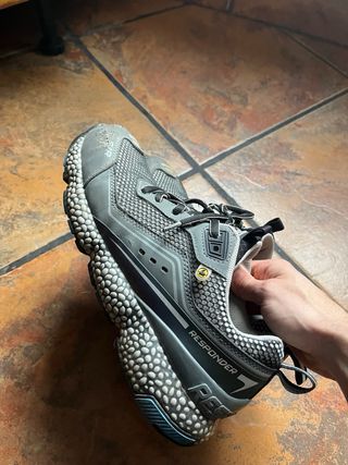Zapatillas de trabajo con un diseño moderno y funcional. - Material exterior de malla transpirable. - Suela con diseño de burbujas para amortiguación. - Cierre de cordones. - Detalle de logo SIR en la puntera. -Costaron 80, las usé 1 mes.