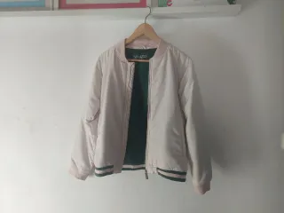 Cazadora bomber de la marca Eva Castro. - Diseño reversible con interior en verde. - Cuello, puños y bajo elásticos con detalles de rayas. - Cierre de cremallera frontal. Talla 16 años, en principio no es reversible porque la cremallera no lo es pero se podría poner de las dos maneras.