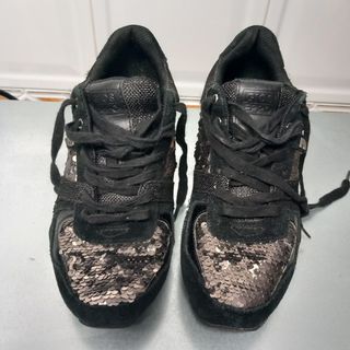 Zapatillas de la marca Gioseppo en talla 36. - Diseño con lentejuelas. - Combinación de colores negro y dorado.