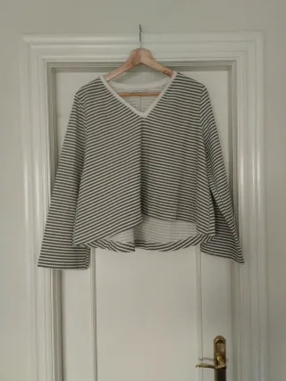 Jersey de rayas con cuello en V y mangas acampanadas. - Diseño a rayas. - Cuello en V. - Mangas acampanadas.