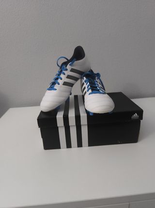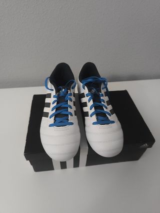 Zapatos de fútbol Adidas blancos y azules