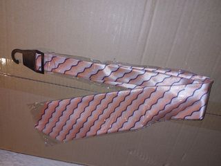 Corbata con un diseño llamativo y original, perfecta para complementar un disfraz o añadir un toque único a tu atuendo. - Diseño de ondas en tonos naranjas y azules. - Acabado brillante. Precio a 1 euro cada una