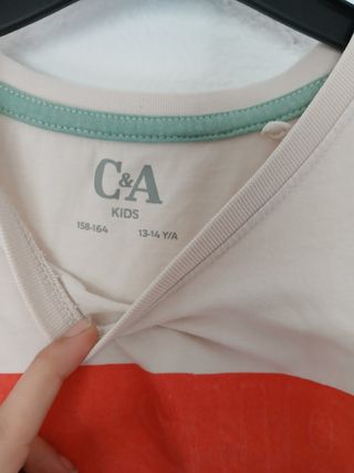 Camiseta C&A rayas naranja y verde