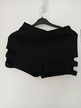 Conjunto de ropa para mujer. - Pantalones cortos negros con diseño de tiras laterales.