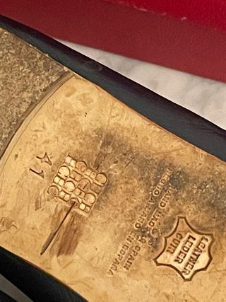 Bailarinas Carolina Herrera en piel azul marino. Talla 41. Las tapetas necesitarán en breve que un zapatero las enganche bien. Quizá tienen servicio de reparación en la boutique. Yo las compré en un córner de la firma de El Corte Inglés.