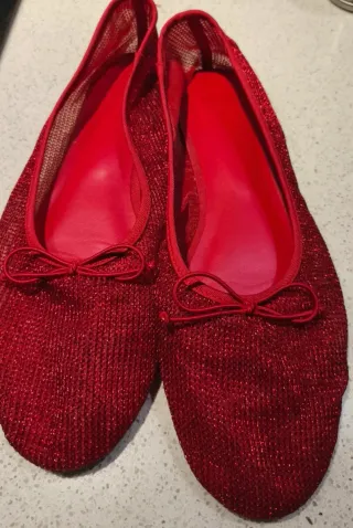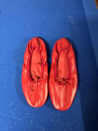 Par de bailarinas de color rojo. - Diseño con cordón ajustable. - Suela flexible.