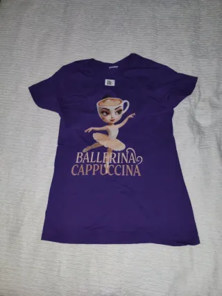 Camiseta de manga corta con un divertido diseño. - Estampado de bailarina con taza de café. - Texto Ballerina Cappuccina. Ancho manga: 36 cm Largo: 66 cm