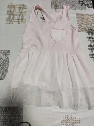 Regalo al comprar algo de mi perfil, mínimo 5€. Vestido de estilo bailarina con un detalle de corazón. - Parte superior de tela suave. - Falda de tul. - Diseño sin mangas. Indica talla 3 y lo ha usado para jugar en casa de 2 a 4 años.