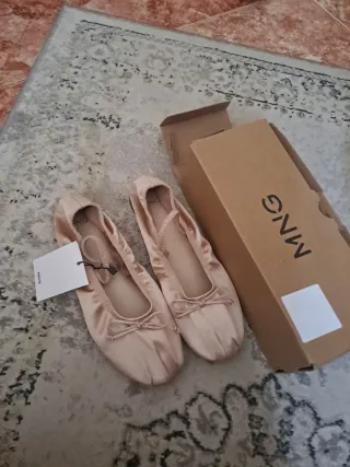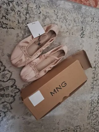 Elegantes bailarinas de Mango con un diseño delicado. Número 36 Cierre de lazo ajustable Nuevas en caja con etiqueta Gastos de envío por cuenta del comprador. No se hace contra reembolso - Material exterior de ante. - Cierre con lazada. - Detalle de lazo en la punta.