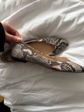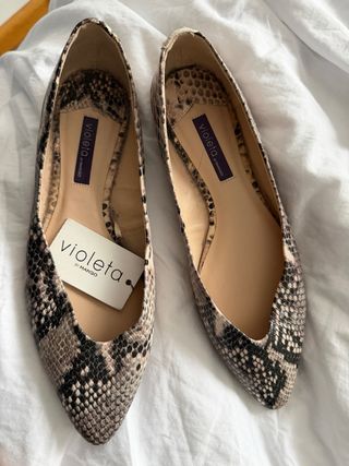 Elegantes bailarinas con estampado de serpiente. - Material exterior de piel. - Diseño de punta fina. - Detalle de logo en la plantilla.