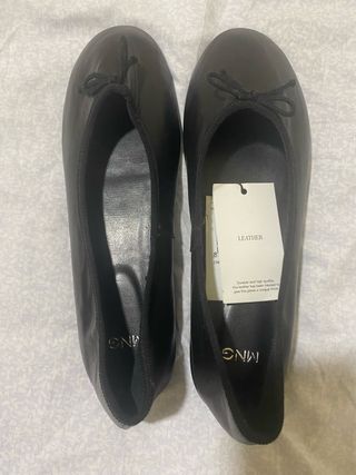 Bailarinas de piel negras de Mango, sin estrenar. - Material exterior: Piel. - Cierre con cordón. - Detalle de lazo. - Suela flexible.