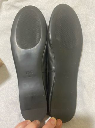 100% piel bovino. Flat. Punta redonda. Sin cierre. Forro interior COMPOSICIÓN, ORIGEN Y CUIDADOS • Corte: 100% piel bovino • Plantilla: 80% polietileno, 20% piel bovino • Suela/piso: 100% termoplástico • Fijación/suela: 100% pegado • Forro (calzado): 80% piel bovino, 20% poliéster ORIGEN • Diseñado en Barcelona • Fabricación: Turquía • Tintura y estampación: Turquía • Tejido: Turquía Usado pero casi perfecto