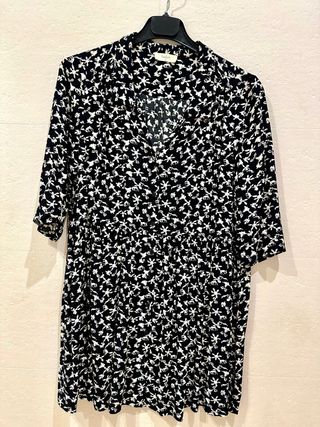 Vestido corto con estampado floral. - Diseño con cuello camisero y manga media - Camisero, ideal con botines o bailarinas - Largo por encima de la rodilla.