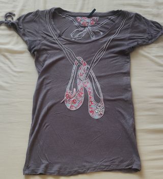 Camiseta de bailarina de Ballet, de Naf Naf, no tiene la etiqueta de la talla pero será una xs -s tiene un pequeño agujero que se aprecia en la foto