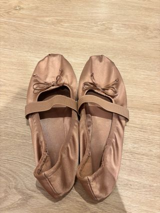 Preciosas bailarinas de satén de MANGO, color beige. Ideales para cualquier ocasión. - Son dos bailarinas. - Están en perfecto estado. - Material suave y delicado.