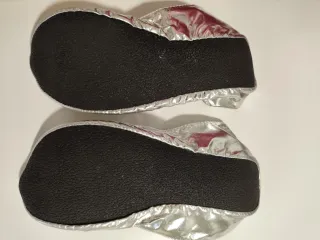 Manoletinas plateadas plegables, de distintas tallas, correspondientes a 37-38-39-40. Al ser con goma, se ajustan a diversas tallas. Ideal para bodas. Sobrante de boda. 20 pares plateados - 7 talla XXL (39-41), 3 talla XL (38-40), 5 talla L (37-39), 4 talla M (37-38), 1 talla S (35-36). Se venden en conjunto a 2,5€ la unidad / 50€ el lote. Solo venta en persona en Madrid o Salamanca.