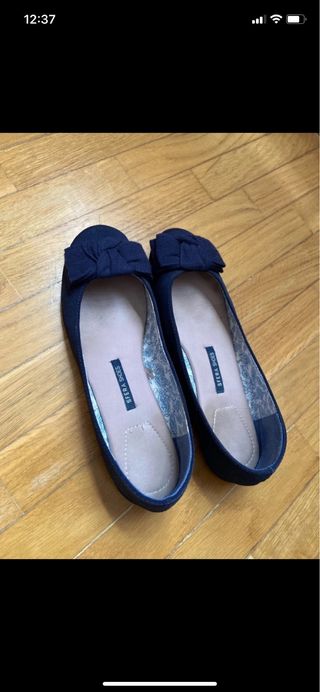 Manoletinas talla 38 Suela plana Color azul marino De venta en Sfera el la temporada pasada Interior y exterior forrado en tejido Lazo zapatero