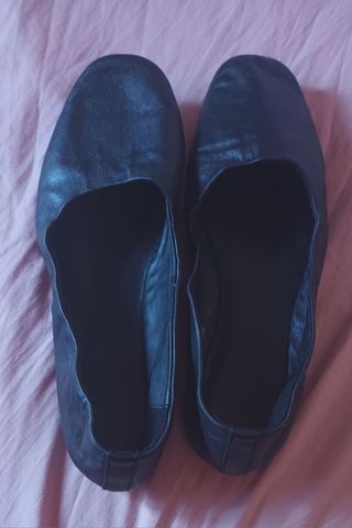 Manoletinas de piel en color azul marino.ñ muy oscuro que parece casi negro me las he puesto bastante, son muy cómodas con la piel muy suave; hay que pegar la plantilla (de piel ) y quizás ponerle suela - Material exterior de piel. - Detalle de costura frontal. - Interior con logo de la marca. - suela de cuero