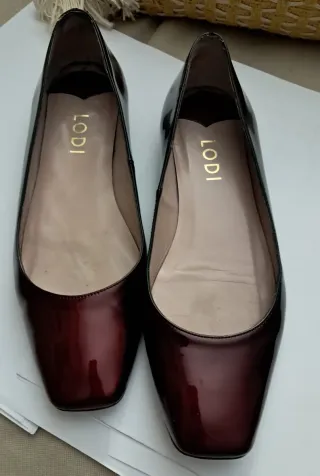 Manoletinas de charol en color burdeos. - Diseño elegante y moderno. - Acabado brillante. - Punta cuadrada.