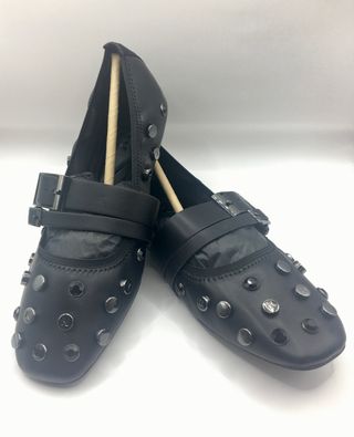 DKNY Bailarinas Piel Negra y Tachuelas Nuevas