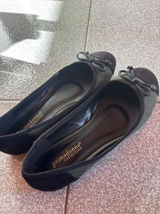 Elegantes bailarinas de la marca Primadonna Collection, en color verde y negro. Son muy cómodas y están como nuevas. - Diseño con lazo decorativo en la punta. - Suela interior con logo de la marca.