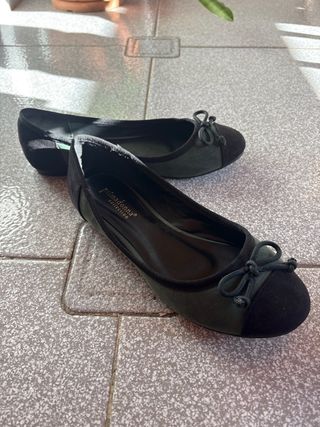Elegantes bailarinas de la marca Zintia. - Diseño en color negro con detalle frontal azul. - Talla 38.