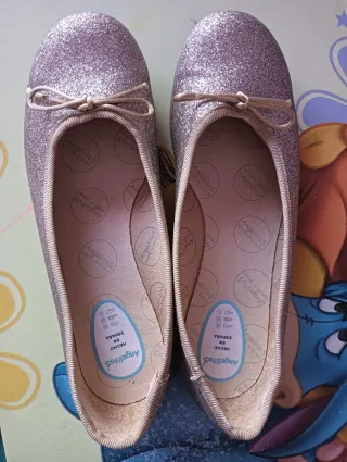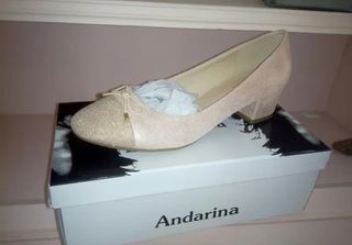 Elegantes bailarinas de la marca Andarina con un toque brillante. Perfectas para añadir un toque de luz a tu atuendo. - Diseño con punta reforzada en glitter. - Adorno de lazo en la pala. - Tacón bajo y cómodo. SOLO UNA PUESTA,COMO NUEVAS EN CAJA HAZ UN LOTE Y AHORRA EN EL ENVIO