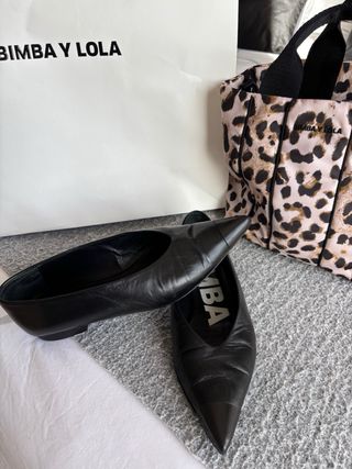 Elegantes bailarinas de punta fina de la marca Bimba y Lola. Con tapetes nuevas recién puestas - Diseño de punta afilada. - Logo de la marca en la plantilla interior.