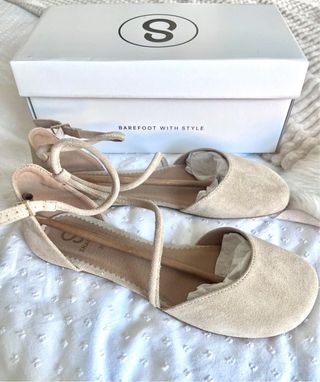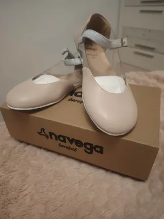 Elegantes bailarinas de la marca Navega barefoot en tono rosa nude. Modelo cristal. Tallan pequeñas. Hacen un 37. Largo interior: 246 Ancho: 92 Precio original:89 eur. - Diseño barefoot para mayor comodidad. - Tira ajustable en el empeine con detalle brillante. - Suela flexible.