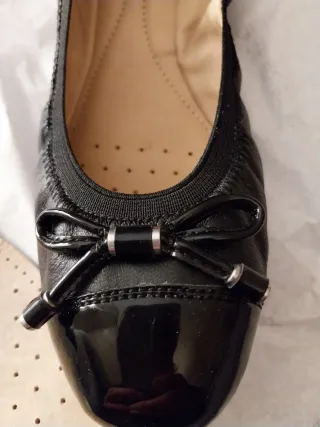 Elegantes bailarinas de charol con un lazo decorativo. - Diseño clásico y versátil. - Acabado brillante. - Detalle de lazo en la punta.
