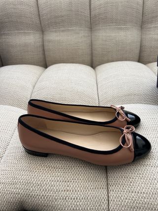 Bailarinas de piel negras, en perfecto estado. Es la talla 38 de niña, yo calzo el 38 y me quedan bien.