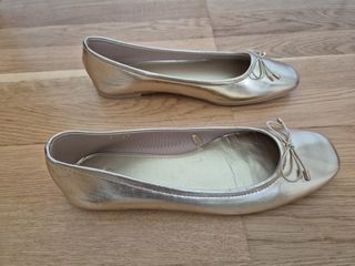 Preciosas bailarinas de la marca parfois, en color dorado y talla 38. Están nuevas, solo usadas una vez. De esta temporada - Diseño elegante con lazo. - Material brillante y sofisticado. - Perfectas para cualquier ocasión.