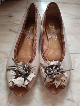 Zapatos comunión, talla 38 color hueso, blanco roto