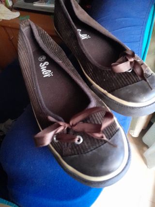 son de pana marrón con lacito muy monas puntera de goma ,sin estrenar