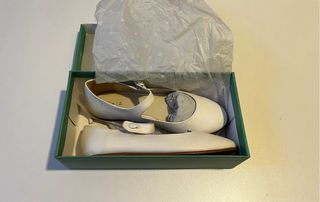 Elegantes zapatos para comunión de la marca Bambi, talla 35. Modelo 4131J, color nacarado beig. Usados una única vez (el día de la comunión), en perfecto estado, como nuevos - Diseño clásico en color blanco. - Tira con detalle de pedrería. - Suela cómoda para el día a día.